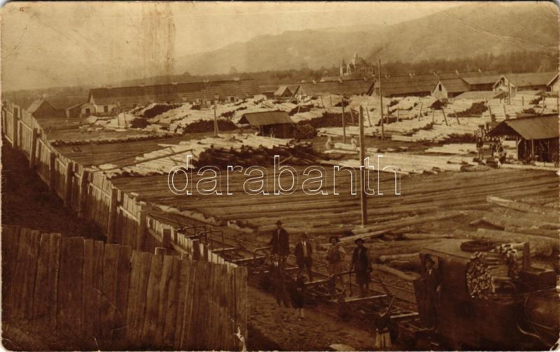 Beschreibung: Stefan Voda, Fatelep és fűrésztelep iparvasúttal / sawmill and lumber yards with industrial railway. photo (EB)
