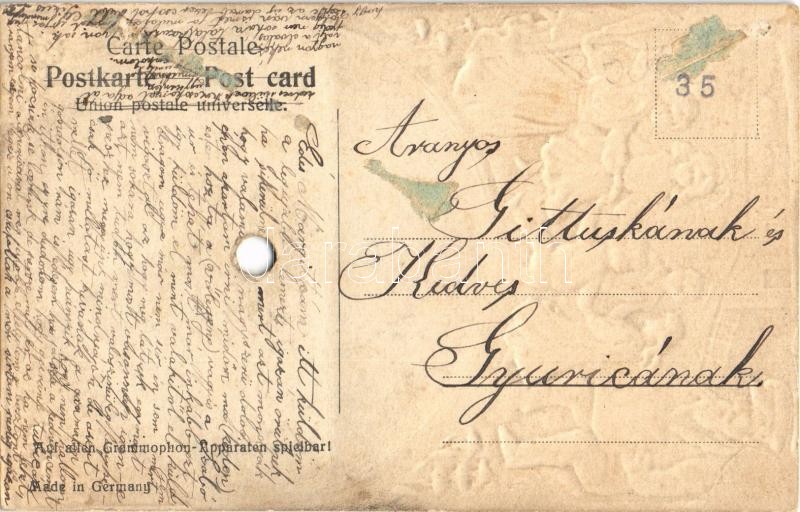 Mimosa Walzer 35. Aus alle Grammophon-Apparaten spielbar! / Hanglemez képeslap - Minden gramofon eszközről lejátszható! / German record postcard - Playable on all gramophone devices! Emb. (fa)