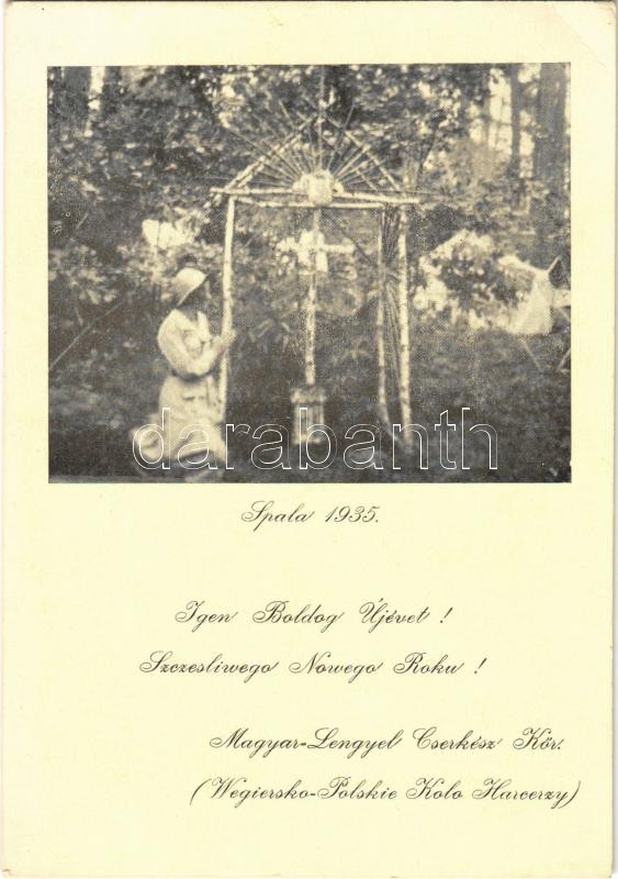1935 Spala. Igen Boldog Újévet! Magyar-Lengyel Cserkész Kör / Szczesliwego Nowego Roku! Wegiersko-Polskie Kolo Harcerzy / Hungarian-Polish Scout Club's New Year greeting card with girl scout (EK)