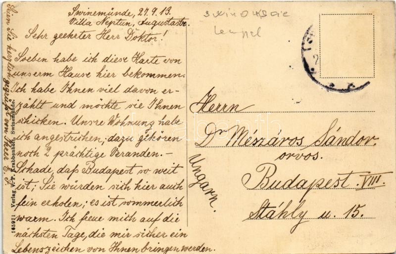 Beschreibung: 1913 Swinoujscie, Swinemünde; See- u. Solbad, Pension Neptun / hotel