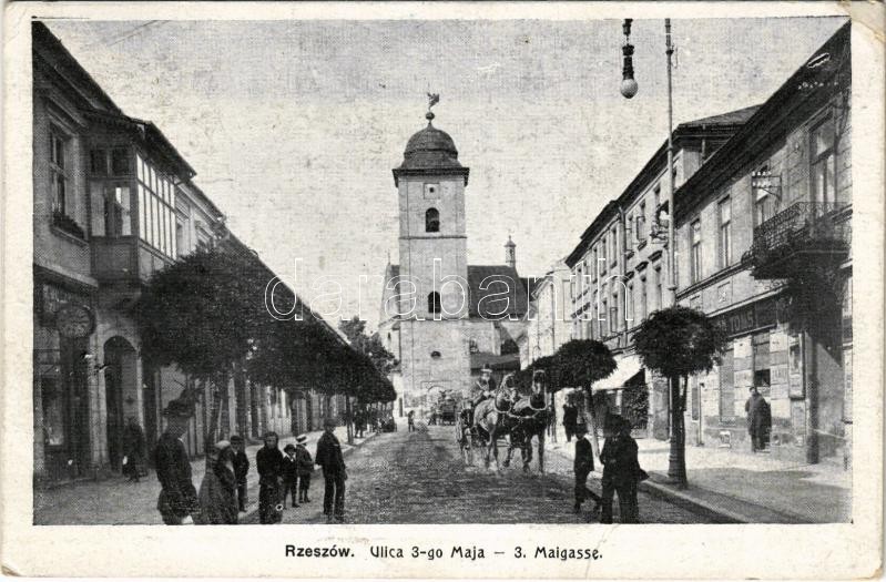 Rzeszów, Resche; Ulica 3-go Maja / street, shops (EK) https://www.darabanth.com/de/36-Gross-Auktion/36.1/Ansichtskarten/Polen~15456/Rzeszow-Resche-Ulica-3-go-Maja-street-shops-EK~II2468620