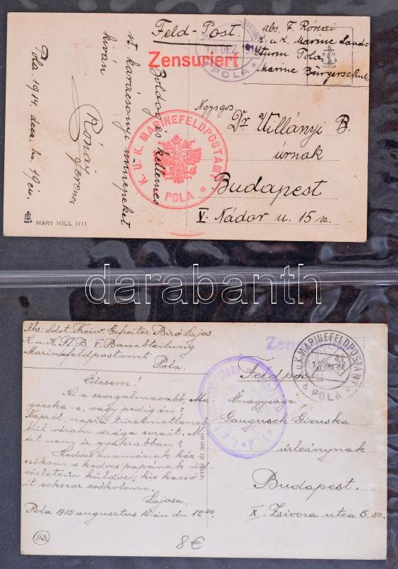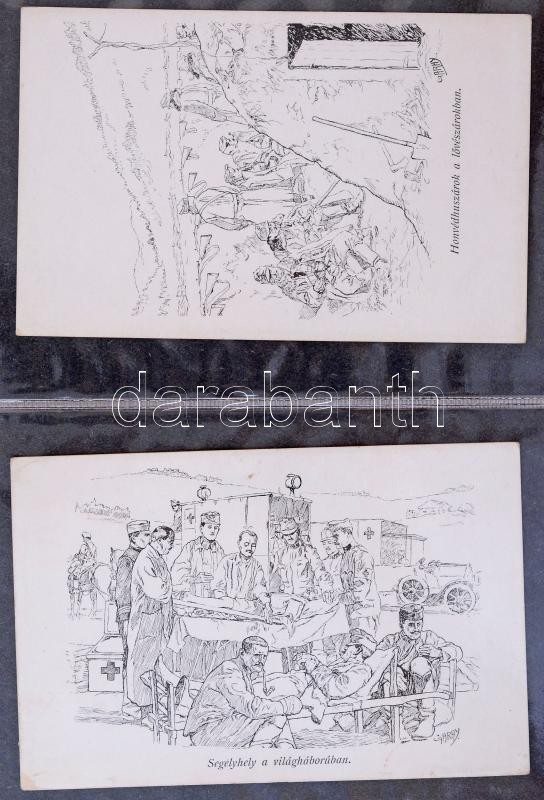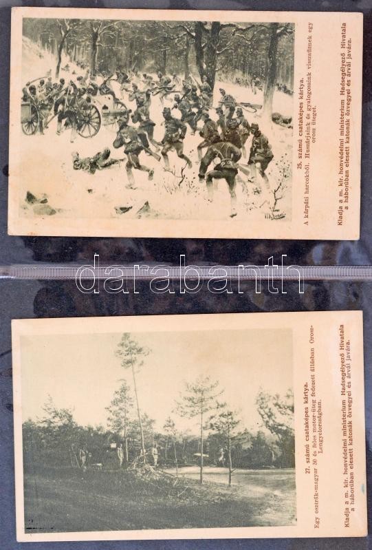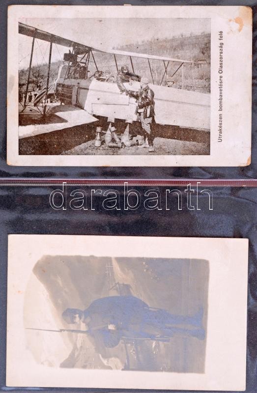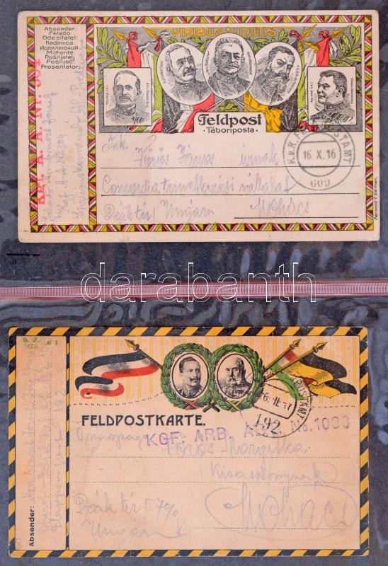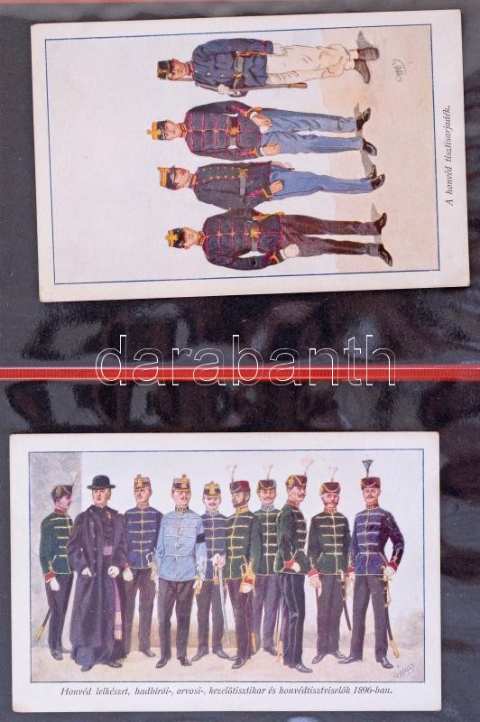 60 db RÉGI első világháborús és régebbi katonai képeslap és bélyegzés albumban, néhány tábori és haditengerészeti is / 60 pre-1945 WWI and older K.u.k. military postcards and cancellations in an album