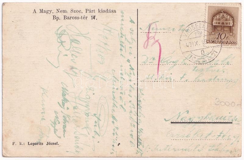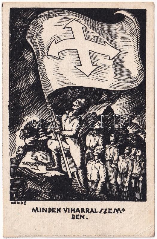 1940 Minden viharral szemben. A Magyar Nemzeti Szocialista Párt kiadása, Bp. Baross tér 17. F.K.: Loparits József Nyilaskeresztes propaganda. Levél a selyei (Vágsellye) "Nyilas Bál"-ról / Hungarian Arrow Cross Party propaganda. Sent from the Arrow Cross ball of Sala s: Dandé (EK)