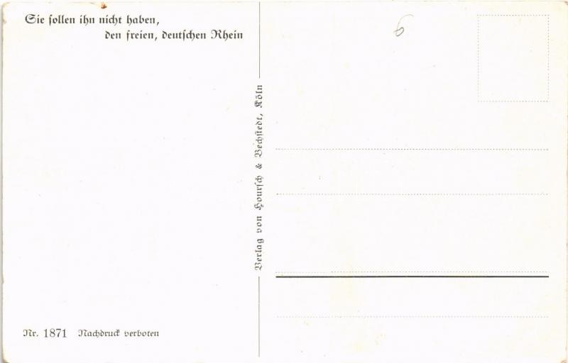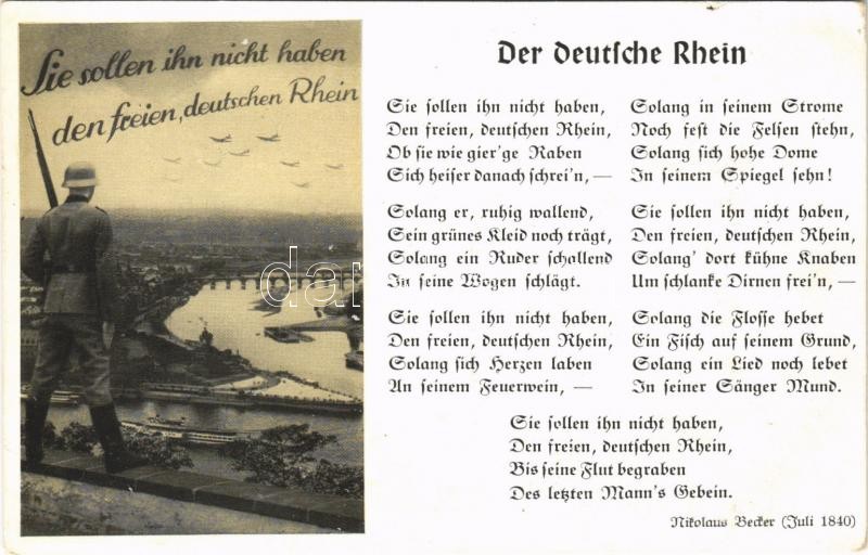 Der deutsche Rhein. Sie sollen ihn nicht haben den freien, deutschen Rhein. Nikolaus Becker, Verlag von Hoursch & Bechstedt Nr. 1871. / WWII German military propaganda