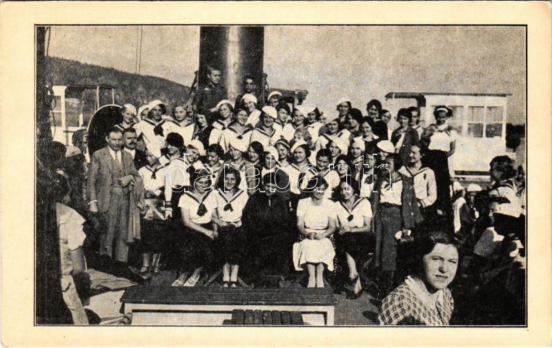 Beschreibung: Esztergom, Az Országos Magyar Gyermekvédő Egyesület tanulmányi hajókirándulása ás saját kiadása, lányok csoportképe