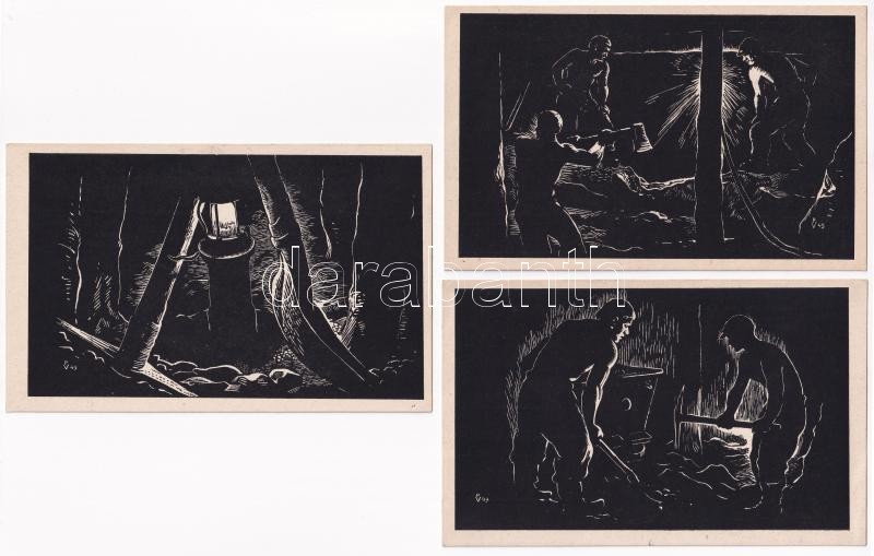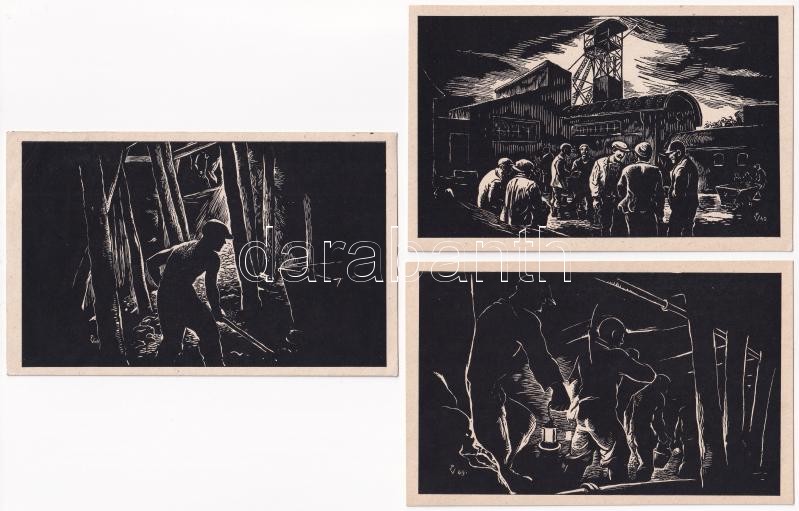 Beschreibung: Varsányi Pál: Bányászok c. fametszet sorozat - 6 db modern Művészeti Alkotások magyar szocialista propaganda képeslap