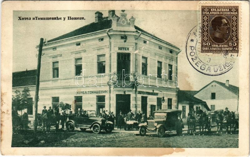 1930 Pozega, Hotel Tomasevic, automobiles (fl) https://www.darabanth.com/de/36-Gross-Auktion/36.1/Ansichtskarten/Serbien~15474/1930-Pozega-Hotel-Tomasevic-automobiles-fl~II2470997
