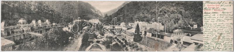 Beschreibung: 1905 Herkulesfürdő, Baile Herculane; 3 részes kinyitható panorámalap. Éberle Keresztély kiadása / 3-tiled folding panoramacard (hajtásnál szakadt / bent til broken)