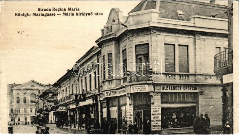 1926 Lugos, Lugoj; Mária királynő utca, Alexander Epstein áruháza a kék csillaghoz, üzletek. Firmei Auspitz kiadása / street, shops / Strada Regina Maria (EK)
