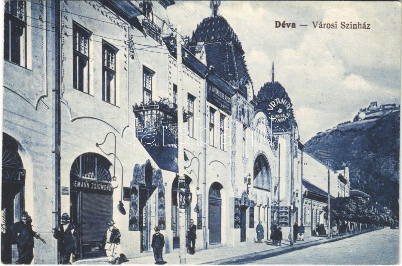 Déva, Városi színház, Uránia mozgószínház, mozi, Émann Zsigmond üzlete... https://www.darabanth.com/de/36-Gross-Auktion/36.1/Ansichtskarten/Siebenburgen~15418/Deva-Varosi-szinhaz-Urania-mozgoszinhaz-mozi-Emann-Zsigmond-uzlete-var-Hirsch-Adolf~II2491118