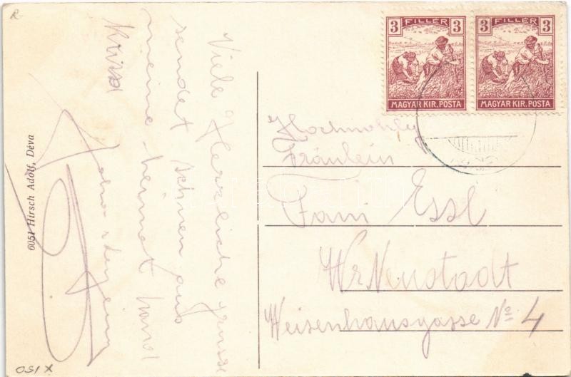 Beschreibung: Déva, Városi színház, Uránia mozgószínház, mozi, Émann Zsigmond üzlete, vár. Hirsch Adolf / theatre, shops, castle, cinema