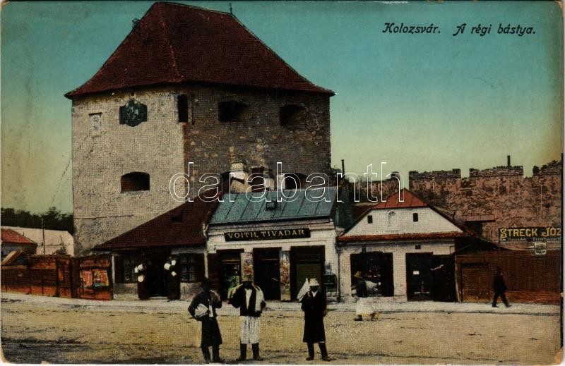 Kolozsvár, Cluj; Régi bástya, Streck József és Voith Tivadar üzlete / ... https://www.darabanth.com/de/36-Gross-Auktion/36.1/Ansichtskarten/Siebenburgen~15418/Kolozsvar-Cluj-Regi-bastya-Streck-Jozsef-es-Voith-Tivadar-uzlete-old-castle-tower-bastio~II2467515