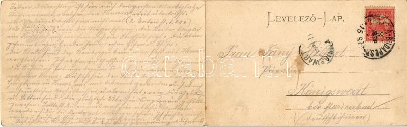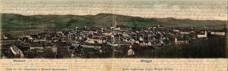 Beschreibung: Medgyes, Mediasch, Medias; Guggenberger Frigyes kiadása, két-részes kinyitható panorámalap / 2-tiled folding panoramacard