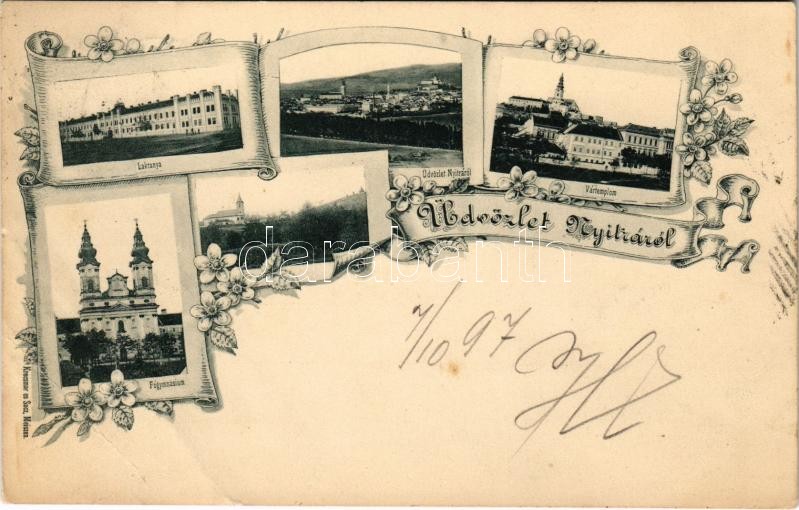1897 (Vorläufer) Nyitra, Nitra; laktanya, vártemplom, főgimnázium. Kre... https://www.darabanth.com/de/36-Gross-Auktion/36.1/Ansichtskarten/Slowakei~15419/1897-Vorlaufer-Nyitra-Nitra-laktanya-vartemplom-fogimnazium-Krecsmar-es-Sacz-kuk-mi~II2484503