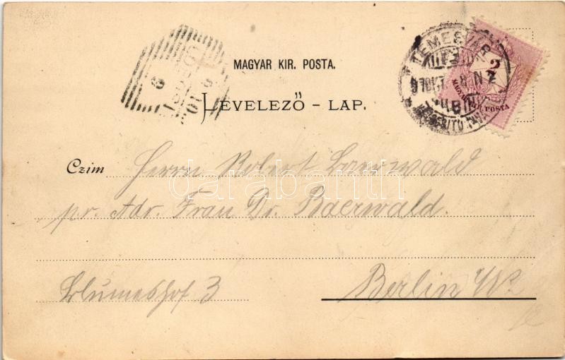 Beschreibung: 1897 (Vorläufer) Nyitra, Nitra; laktanya, vártemplom, főgimnázium. Krecsmar és Sacz / k.u.k. military barracks, school, castle church. Art Nouveau, floral (EB)