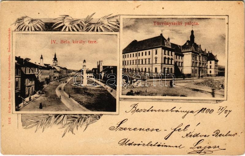 1899 (Vorläufer) Besztercebánya, Banská Bystrica; IV. Béla király tere, Törvényszéki palota. Ivánszky Elek kiadása / square, court palace. Art Nouveau, floral