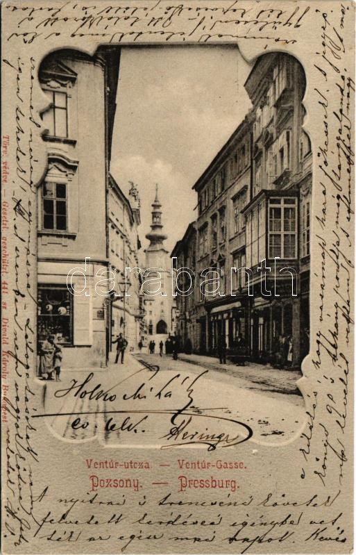 Beschreibung: 1901 Pozsony, Pressburg, Bratislava; Ventúr utca. Divald Károly 441. / street (Rb)