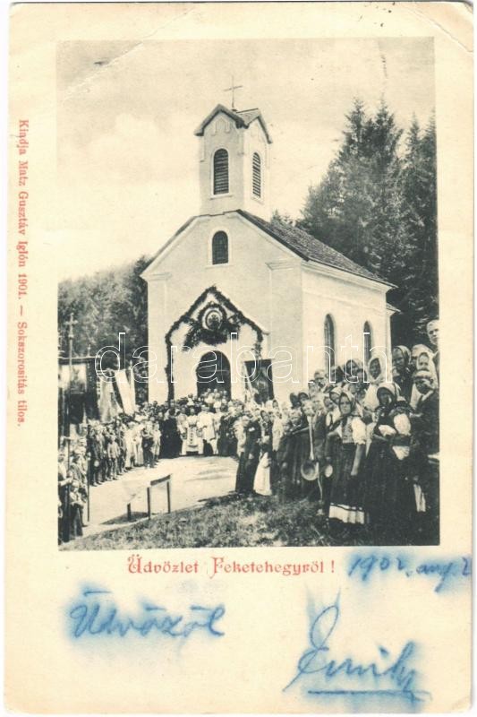 1902 Feketehegy, Cernohorské kúpele, Schwartzenberg (Merény, Vondrisel, Nálepkovo); Katolikus körmenet a kápolna előtt. Matz Gusztáv 1901 / Catholic procession in front of the chapel (EB)