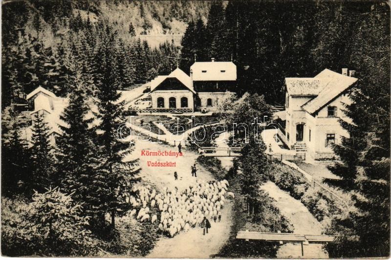 1903 Körmöcbánya, Kremnitz, Kremnica; Zólyomvölgy, Vadászkürt szálloda, juhnyáj terelés. Paxner J. és Biron H. kiadása / valley, hotel, sheep herding (EK)