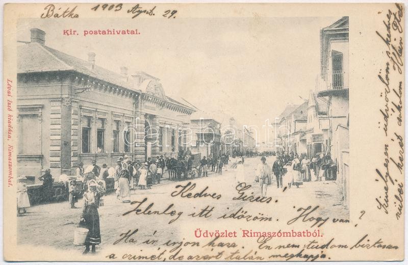 1903 Rimaszombat, Rimavská Sobota; M. kir. postahivatal, üzletek. Léva... https://www.darabanth.com/de/36-Gross-Auktion/36.1/Ansichtskarten/Slowakei~15419/1903-Rimaszombat-Rimavska-Sobota-M-kir-postahivatal-uzletek-Levai-Izso-kiadasa-street-v~II2477650