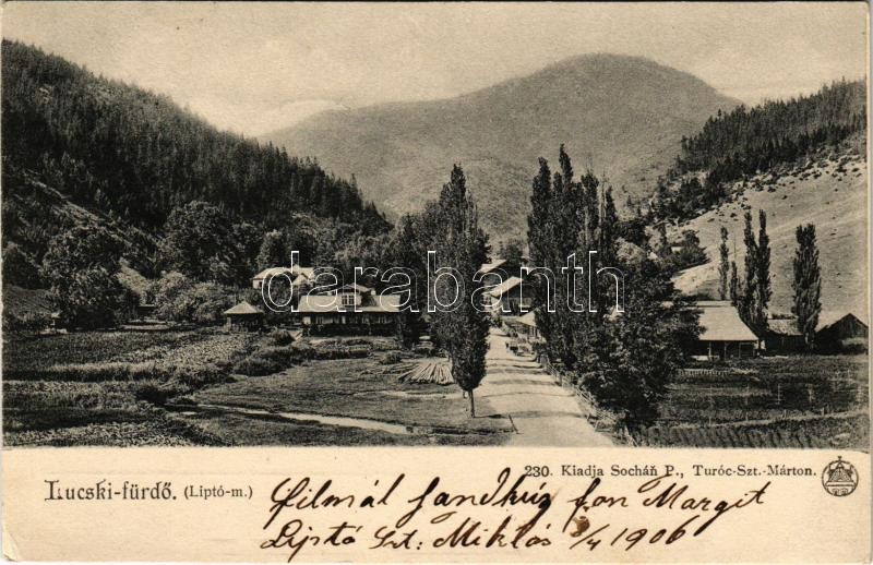 1906 Lucski-fürdő, Lúcky Kúpele (Liptó); fürdőtelep. Sochán P. 230. + ... https://www.darabanth.com/de/36-Gross-Auktion/36.1/Ansichtskarten/Slowakei~15419/1906-Lucski-furdo-Lucky-Kupele-Lipto-furdotelep-Sochan-P-230-plus-LIPTO-SZ-MIKLOS-KO~II2489595