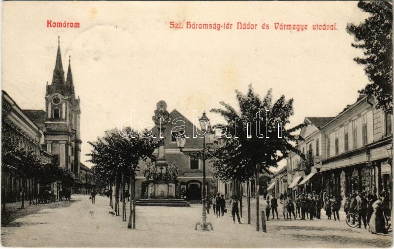 1909 Komárom, Komárnó; Szentháromság tér és szobor, Vármegye utca, Löw... https://www.darabanth.com/de/36-Gross-Auktion/36.1/Ansichtskarten/Slowakei~15419/1909-Komarom-Komarno-Szentharomsag-ter-es-szobor-Varmegye-utca-Lowinger-es-Neu-es-Gol~II2484638