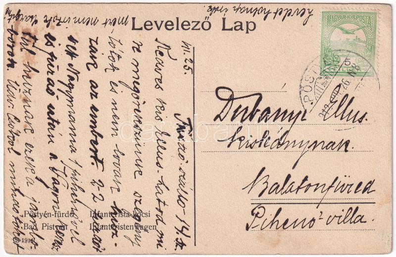 Beschreibung: 1912 Pöstyén, Piestany; Fürdőkocsi / Curhotel Infanterist / spa carriage (EK)