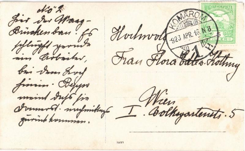 1923 Komárom, Komárnó; Vág híd építés közben / construction of the Váh... https://www.darabanth.com/de/36-Gross-Auktion/36.1/Ansichtskarten/Slowakei~15419/1923-Komarom-Komarno-Vag-hid-epites-kozben-construction-of-the-Vah-river-bridge-photo~II2476369