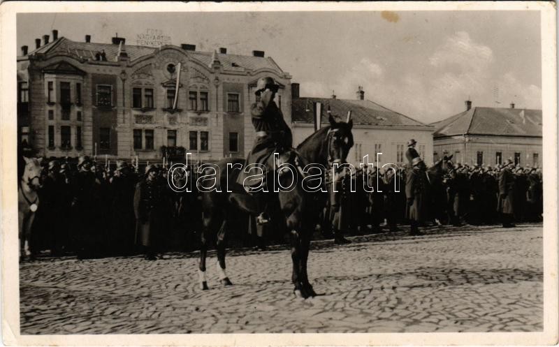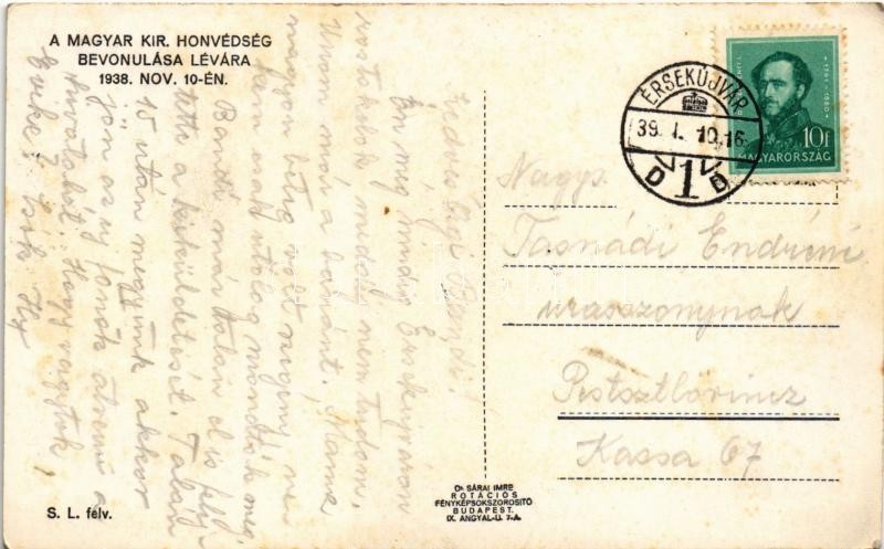 1938 Léva, Levice; bevonulás, Foto Nagy Artur fényképész reklám a házt... https://www.darabanth.com/de/36-Gross-Auktion/36.1/Ansichtskarten/Slowakei~15419/1938-Leva-Levice-bevonulas-Foto-Nagy-Artur-fenykepesz-reklam-a-hazteton-SL-felvetele-~II2484723