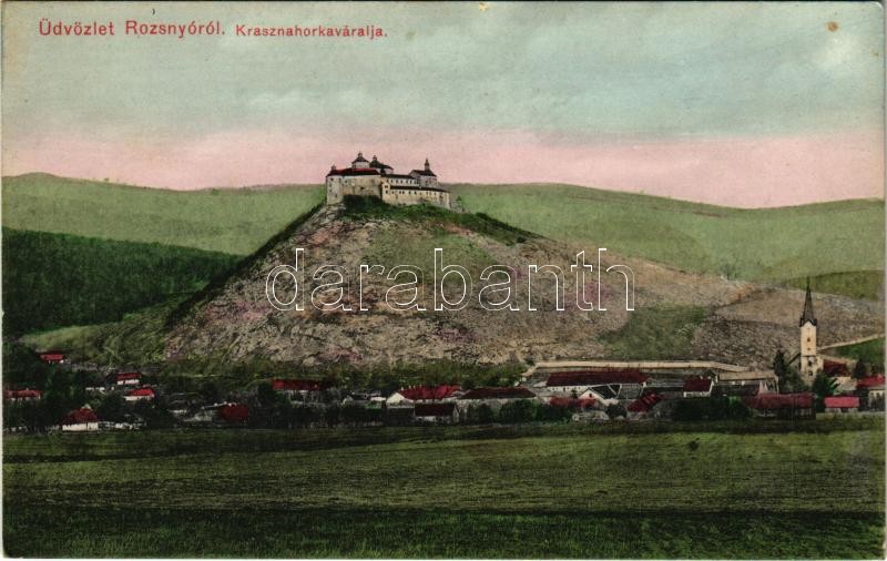 Beschreibung: Krasznahorkaváralja, Krásnohorské Podhradie (Rozsnyó); Krasznahorka vára. Rufy János kiadása / Hrad Krásna Horka / castle