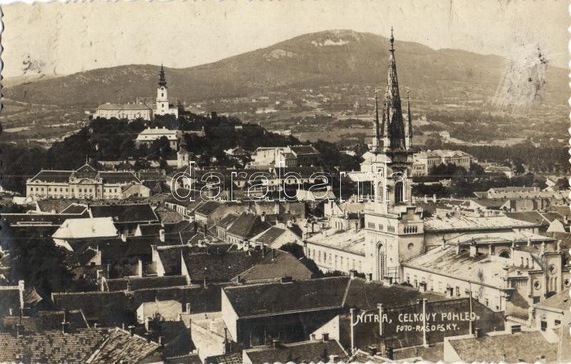 Beschreibung: Nyitra, Nitra; Celkovy pohled / látkép, püspöki vár, templom / general view, bishop's castle, church. Foto Rasofsky photo (ragasztónyom / glue marks)