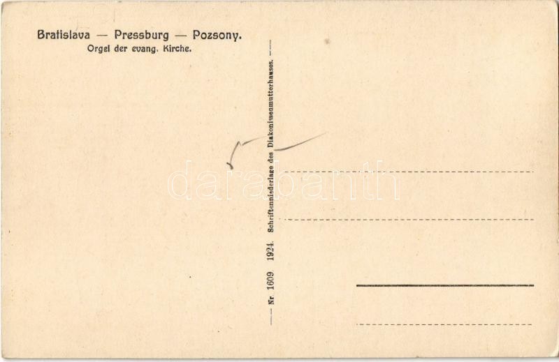 Pozsony, Pressburg, Bratislava; Evangélikus templom belső, orgona / Or... https://www.darabanth.com/de/36-Gross-Auktion/36.1/Ansichtskarten/Slowakei~15419/Pozsony-Pressburg-Bratislava-Evangelikus-templom-belso-orgona-Orgel-der-evang-Kirche-Luth~II2488908