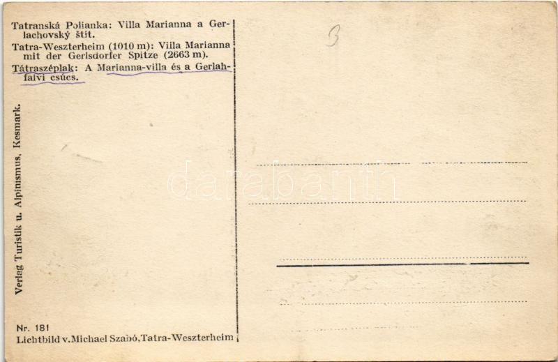 Tátraszéplak, Tatranska Polianka, Westerheim (Magas-Tátra, Vysoké Tatr... https://www.darabanth.com/de/36-Gross-Auktion/36.1/Ansichtskarten/Slowakei~15419/Tatraszeplak-Tatranska-Polianka-Westerheim-Magas-Tatra-Vysoke-Tatry-Marianna-villa-Gerlah~II2486010