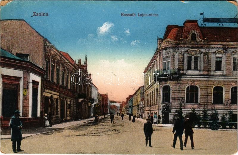 Zsolna, Zilina; Kossuth Lajos utca. Vasúti levelezőlapárusítás 9. 1916... https://www.darabanth.com/de/36-Gross-Auktion/36.1/Ansichtskarten/Slowakei~15419/Zsolna-Zilina-Kossuth-Lajos-utca-Vasuti-levelezolaparusitas-9-1916-street-EK~II2488005