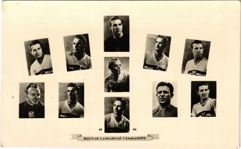 1954 Magyar Labdarúgó Válogatott (a világbajnokság vesztes csapata), Aranycsapat, Puskás, Grosics, Hidegkuti; foci, Képzőművészeti Alap Kiadóvállalat / Hungarian national football team, Golden Team