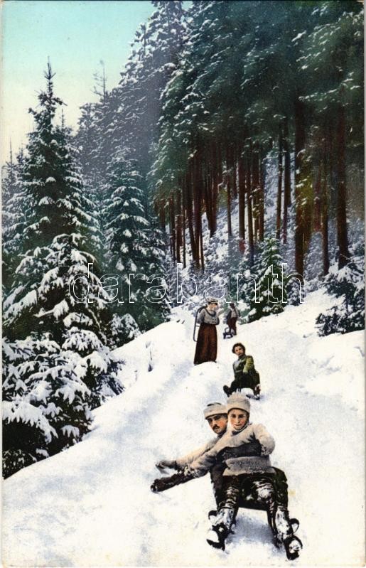 Beschreibung: Téli sport, szánkózók / winter sport, sledding. Wintersport-Verlag K.K. i. L. Steiermark