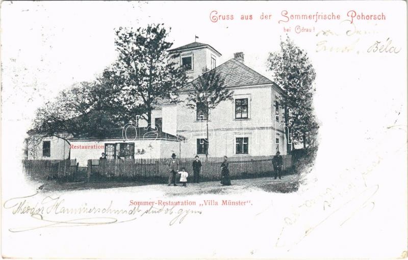 1905 Pohor, Pohorsch bei Odrau (Odry); Sommer Restauration Villa Münst... https://www.darabanth.com/de/36-Gross-Auktion/36.1/Ansichtskarten/Tschechische-Republik~15439/1905-Pohor-Pohorsch-bei-Odrau-Odry-Sommer-Restauration-Villa-Munster-restaurant~II2478510