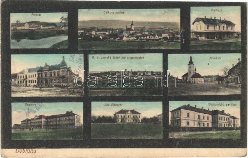 1917 Dobrany, Nádrazí, Pivovar, Kasárny, Villa Albrecht, Dústojnicky p... https://www.darabanth.com/de/36-Gross-Auktion/36.1/Ansichtskarten/Tschechische-Republik~15439/1917-Dobrany-Nadrazi-Pivovar-Kasarny-Villa-Albrecht-Dustojnicky-pavillon-railway-station-~II2476737