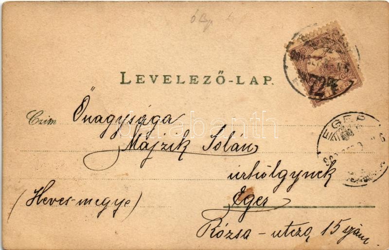 Beschreibung: 1896 Budapest XIV. Ezredéves Országos Kiállítás, Igazgatósági épület. Art Nouveau, litho