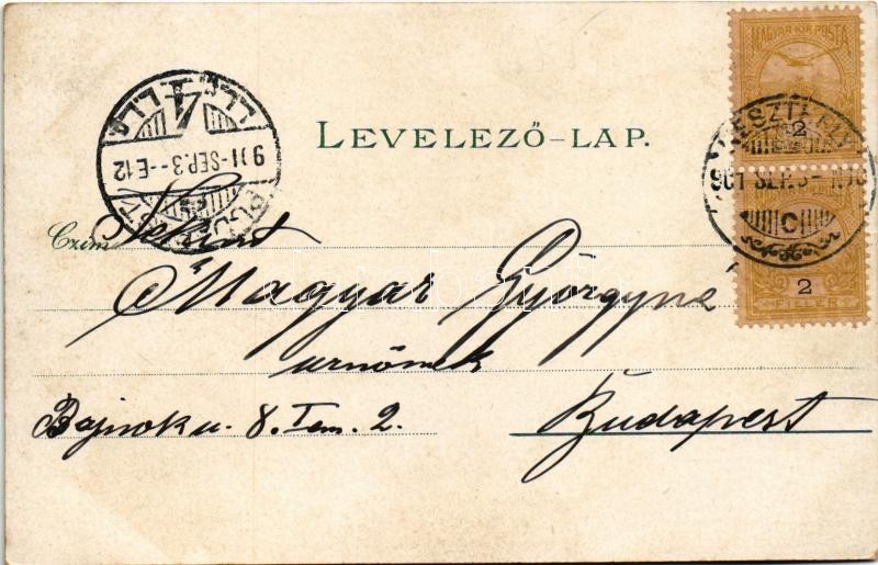 Beschreibung: 1901 Hévíz, Hetes Ház, fürdő, Mexikó szálloda, kápolna. Moricz Marton kiadása, Art Nouveau, floral, litho