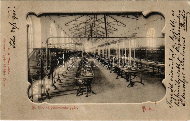1901 Tolna, M. kir. selyemfonoda gyár, belső. Weltmann Ignác kiadása, ... https://www.darabanth.com/de/36-Gross-Auktion/36.1/Ansichtskarten/Ungarn~15417/1901-Tolna-M-kir-selyemfonoda-gyar-belso-Weltmann-Ignac-kiadasa-Art-Nouveau~II2483309