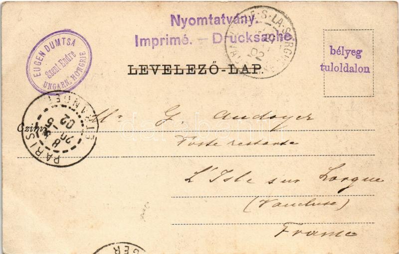 1902 Szentendre, Dunapart, gőzhajó. Lichtenstein M. kiadása, TCV card + Eugen Dumtsa (Dumtsa Jenő) Szentendre város első polgármesterének a saját kézzel írt levele. Szerb volt és Magyarország első szervezett képeslap gyűjtője a képeslap megjelenése óta + Pecsétje és gyűjtői száma. Az egész világgal levelezett képeslapokkal és több ezer darab képeslap volt a gyűjteményében.