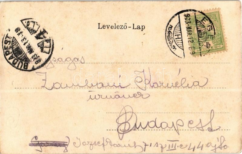 Beschreibung: 1903 Eger, mecset. Szecessziós litho magyar zászlóval, Art Nouveau