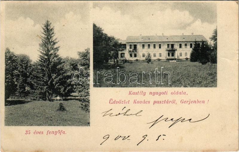 1904 Gerjen, Kovács-puszta, Mádi Kovács kastély nyugati oldala, 35 éve... https://www.darabanth.com/de/36-Gross-Auktion/36.1/Ansichtskarten/Ungarn~15417/1904-Gerjen-Kovacs-puszta-Madi-Kovacs-kastely-nyugati-oldala-35-eves-fenyofa-EK~II2483123