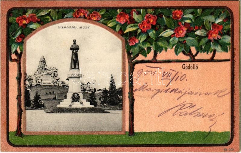 1904 Gödöllő, Erzsébet királyné (Sissi) szobor. Szecessziós litho kere... https://www.darabanth.com/de/36-Gross-Auktion/36.1/Ansichtskarten/Ungarn~15417/1904-Godollo-Erzsebet-kiralyne-Sissi-szobor-Szecesszios-litho-keret-Art-Nouveau-Nemesa~II2488582