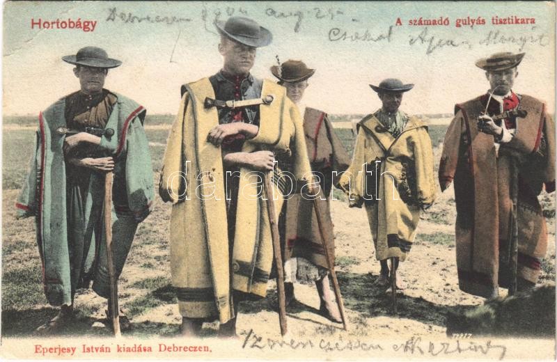 1904 Hortobágy, Számadó gulyás tisztikara. Eperjesy István kiadása (EK... https://www.darabanth.com/de/36-Gross-Auktion/36.1/Ansichtskarten/Ungarn~15417/1904-Hortobagy-Szamado-gulyas-tisztikara-Eperjesy-Istvan-kiadasa-EK~II2490889