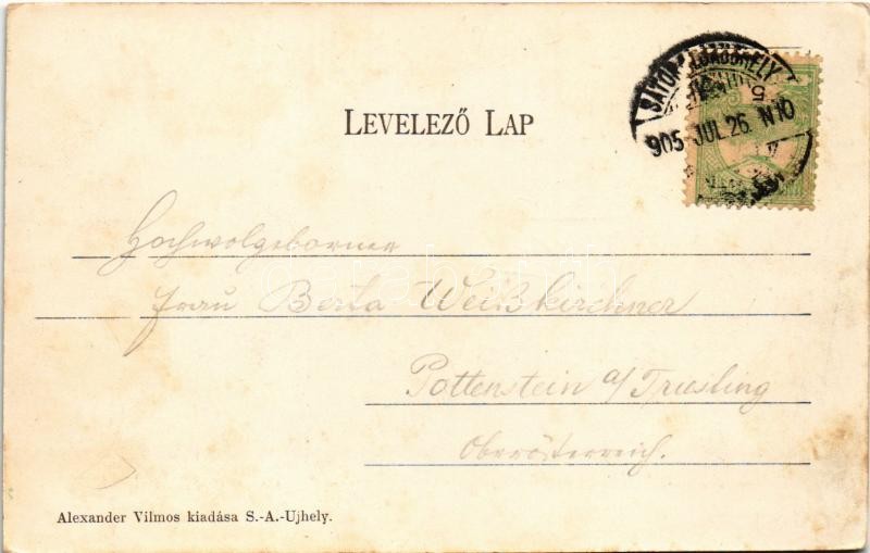 Beschreibung: 1905 Sátoraljaújhely, Rákóczi utca, Nagy Ferenc és Róth Vilmos üzlete. Alexander Vilmos kiadása