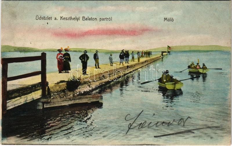 1907 Keszthely, Balaton part, móló. Vasvári József kiadása https://www.darabanth.com/de/36-Gross-Auktion/36.1/Ansichtskarten/Ungarn~15417/1907-Keszthely-Balaton-part-molo-Vasvari-Jozsef-kiadasa~II2488553