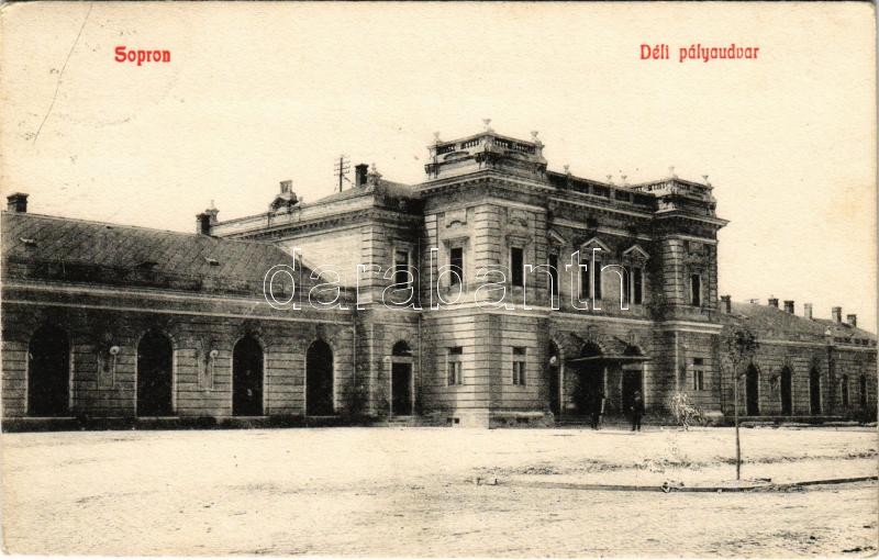 1909 Sopron, Déli pályaudvar, vasútállomás https://www.darabanth.com/de/36-Gross-Auktion/36.1/Ansichtskarten/Ungarn~15417/1909-Sopron-Deli-palyaudvar-vasutallomas~II2488644