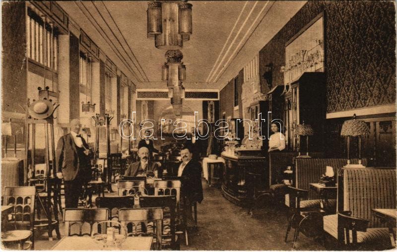 Beschreibung: 1913 Budapest VIII. Hotel Park szálloda és kávéház a Baross tér 10. alatt a keleti pályaudvar érkezési oldalán, belső